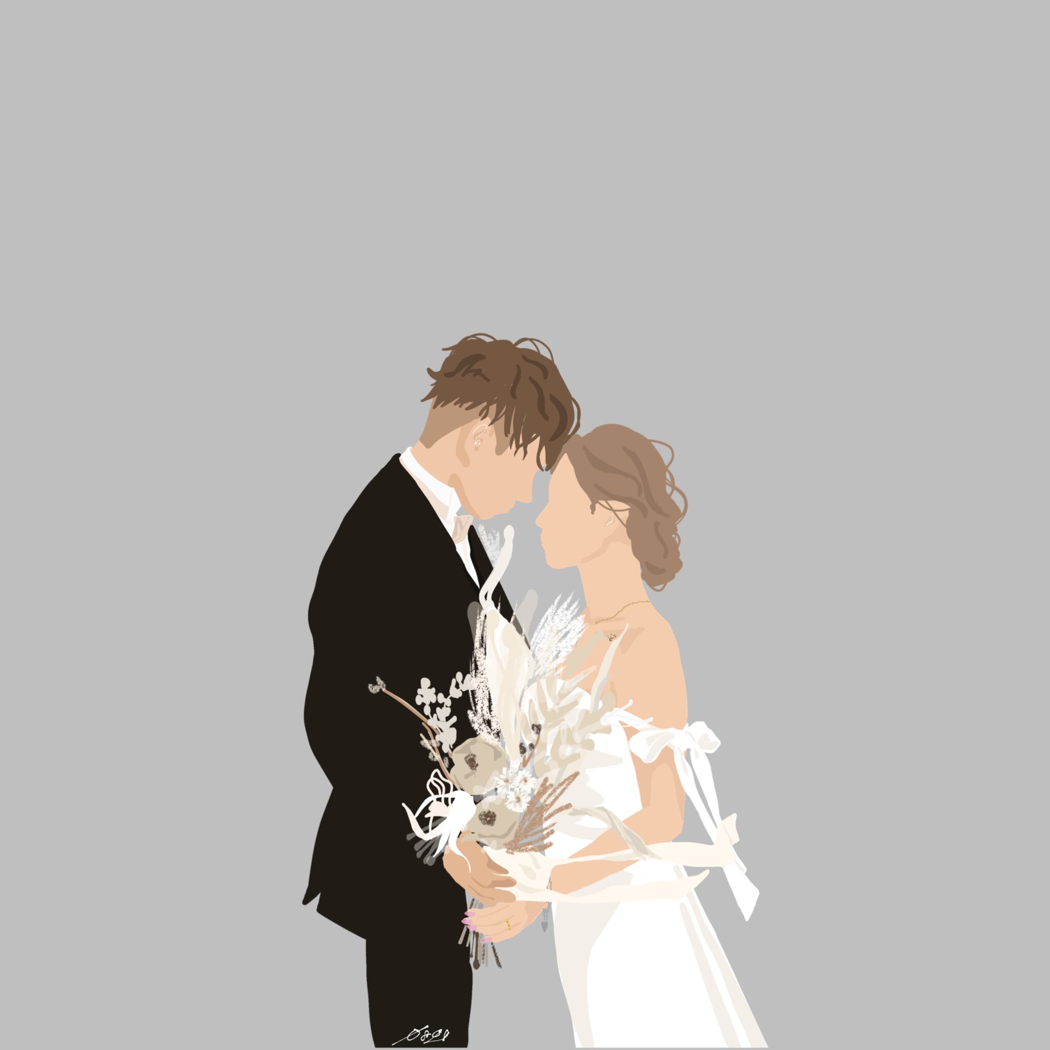 結婚式でのお写真や、前撮り、後撮りなどのお写真をもとにイラストにいたします。